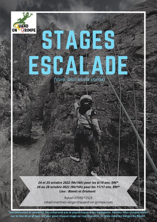 Le stage se déroule en falaise sur le site du Blavet (2 jours) et au Dramont de 9h à 16h.