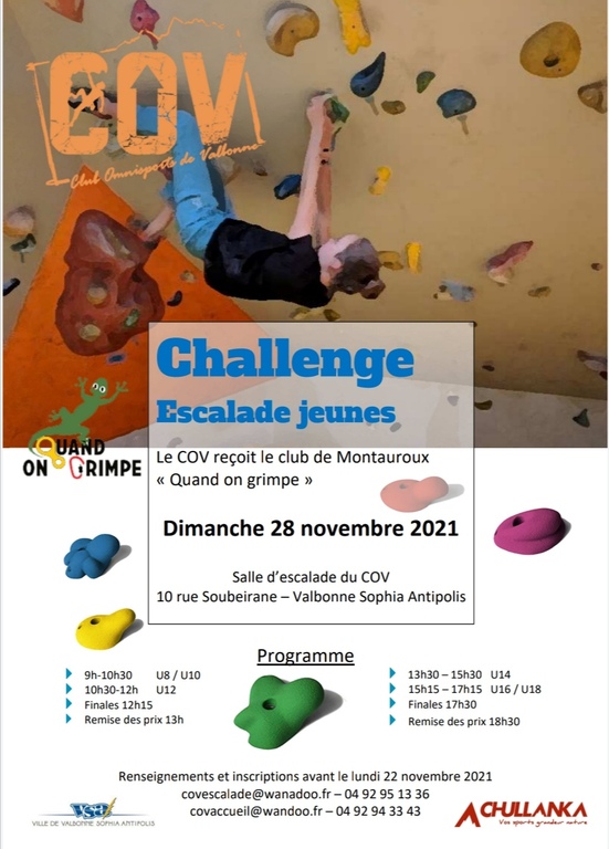Après un challenge au mur chez nous, nous sommes invités par le COV pour un défi bloc.